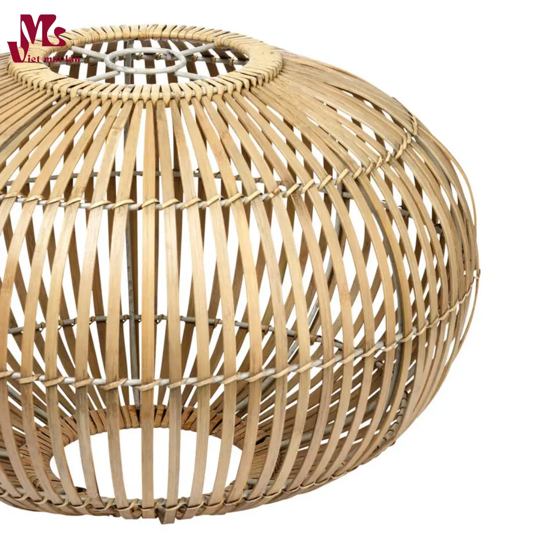 Our Bamboo Lampshade are made from natural Bamboo. With meticulous weaving by artisans from traditional Vietnamese craft villages, the lamps become unique, attractive and give a sense of calm to the home. Put any room in the spotlight with this beautiful lampshade. Not only a great hanging lamp by day but especially by night when switched on. Thanks to the weaving, the lamp has beautiful light and shadow effects, which provide exciting and playful effects in any space. The beautiful asymmetrical shape of the lamp provides a modern look. Take your interiors back to nature!