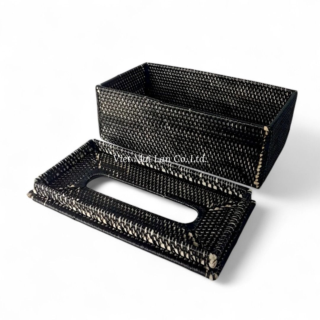 Black Rectangular Rattan Tissue Box