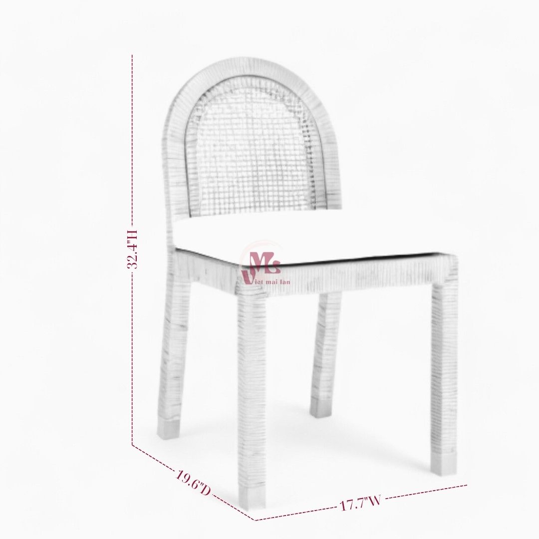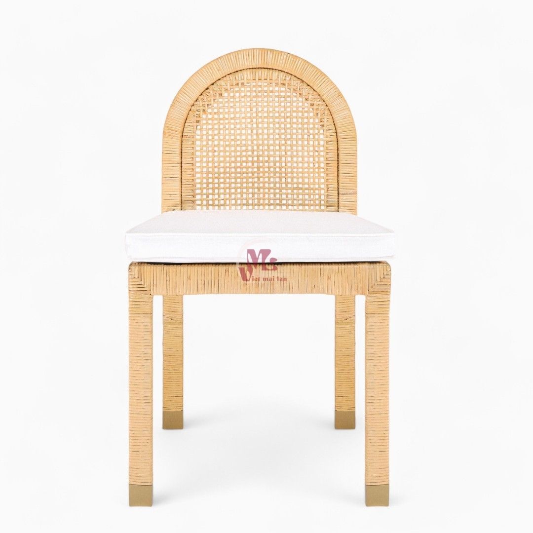 - Its rounded backrest and seat lend a smooth silhouette, while slim rattan rods form a smooth embrace. It features a varnished finish, giving the piece undeniable wear resistance. Moreover, the natural finish highlights the beauty of the wicker, creating a warm, informal look that enhances any dining setting.