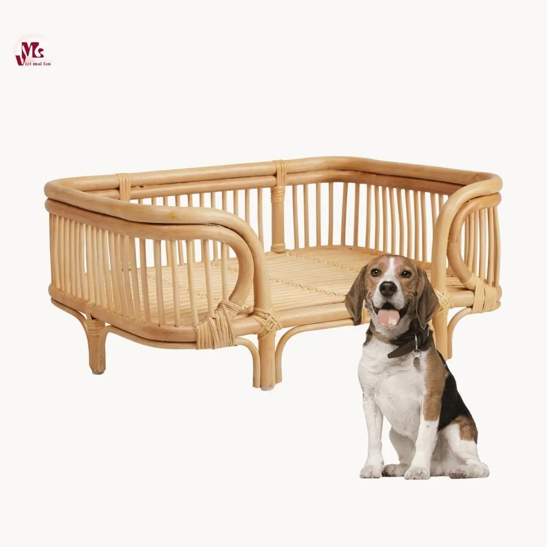 Our Natural Rattan Dog Bed will be a warm and attractive bed for your pet. It is suitable for dogs. The product is made from natural rattan materials so it is safe for the health of pets. Besides, It is flexible and durable. So it can bear the weight of your dog. Your dog can freely jump, play on this bed, even chew on the bed rails. This rattan bed is highly breathable, mold-free and easy to clean. This dogs house is not a new design but it is a warm bed and an indispensable gift for your pet.
