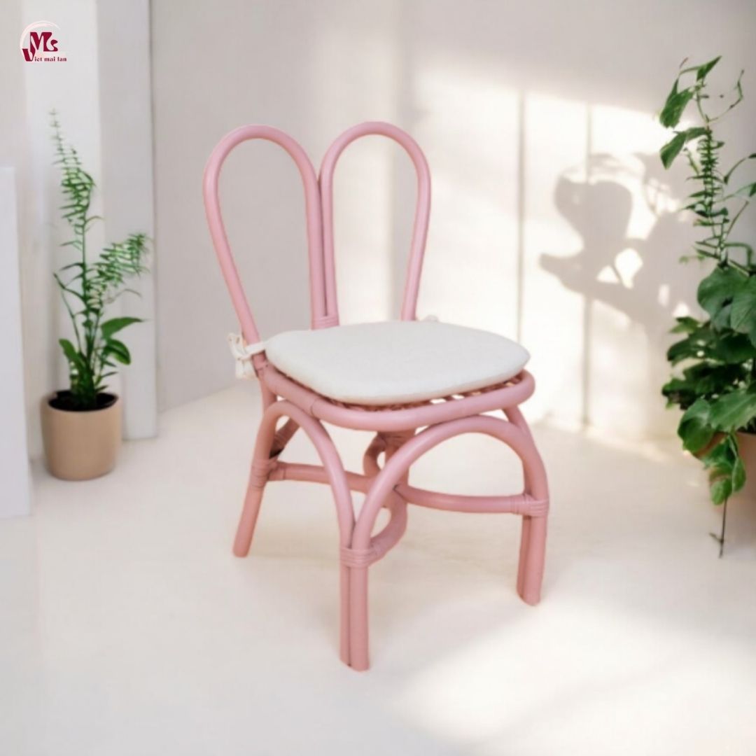 Our Pink rattan kid’s chair are made from natural rattan material. This chair is used for children to direct sit. The natural material makes the product friendly to the environment and especially to children. We are always meticulous and careful in every step of making chair products to produce sturdy chairs with smooth, not rough surfaces. Because we know children will be the ones using and having direct touch with this product. So we want the chair to be finished in the best possible way to be safe for children’s skin.