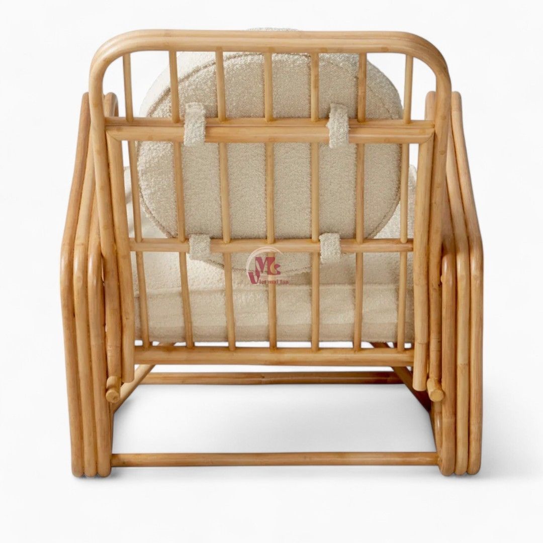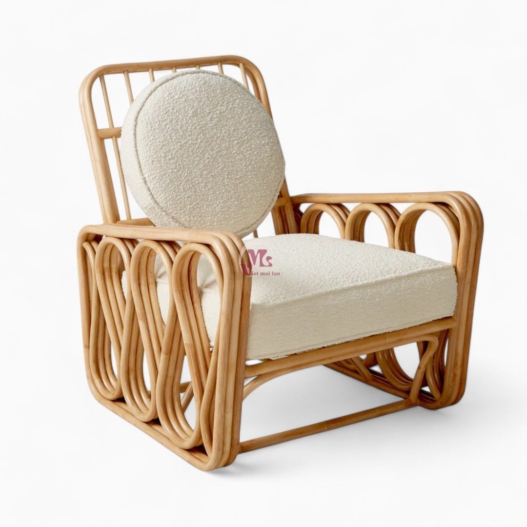 Add natural, luxury to your room with our Vietnam Rattan Lounge Chair. Crafted from natural rattan, its airy silhouette and woven details evoke a timeless yet contemporary appeal. The open back offer comfort and style, making it a perfect addition to any modern living space. Experience the fusion of mid-century charm and contemporary aesthetics in this exceptional piece.
