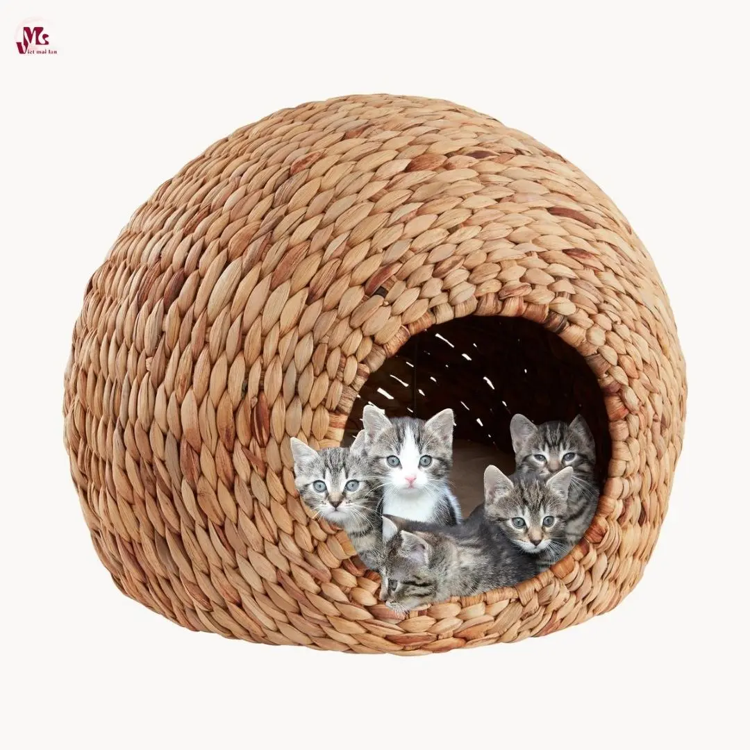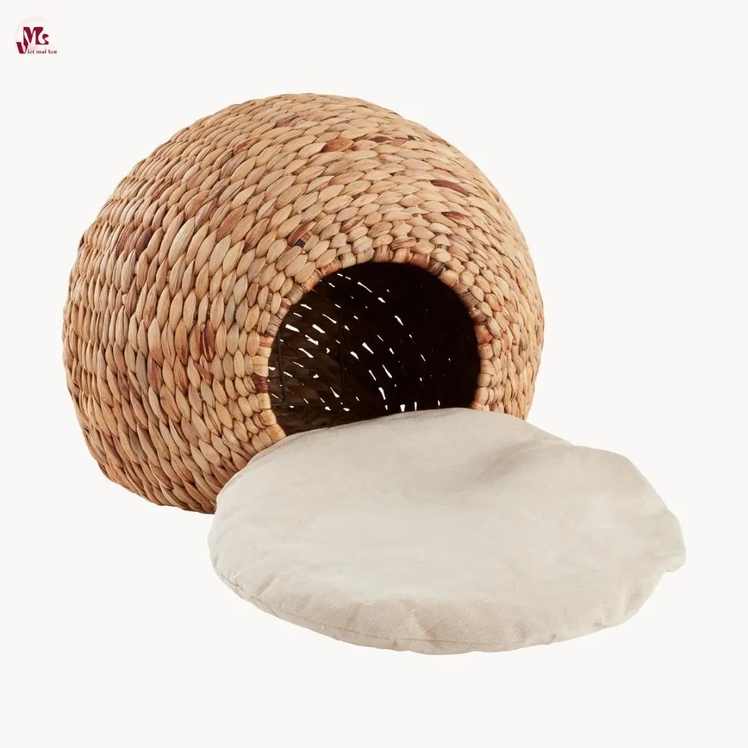Our Wicker Cats house will be a warm and attractive bed for your pet. It is suitable for cats. The product is made from natural water hyacinth materials so it is safe for the health of pets. Besides, this natural material has a good effect of keeping warm in winter and cool in summer. Your cat can freely scratch into this house, which must be very enjoyable for it. The product has an electrostatic iron frame so it is very sturdy and durable. This cat’s house is not a new design but it is a warm bed and an indispensable gift for your pet.